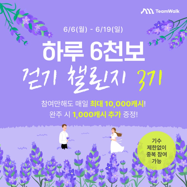📌 걸음수 캐시 - 하루에 6,000걸음을 걸을 때마다 최대 10,000캐시를 받을 수 있어요. - 걸음수캐시 버튼에 '캐시받기!' 글자가 보이면 터치해서 캐시를 받으세요. - 하루에 최대 6,000 걸음까지만 걸음수가 인정돼요. - 챌린지 목표를 달성하지 못 해도, 챌린지 리워드가 다 소진되어도 걸음수캐시는 챌린지 종료일까지 계속 받을 수 있어요. 📌 챌린지 리워드 - 챌린지 기간 내에 최종 목표를 달성하면 리워드를 받을 수 있어요. - 챌린지 목표 달성 후 리워드가 아직 남아있으면 받기 버튼을 터치해서 리워드를 받을 수 있어요. - 리워드 갯수에 제한이 있을 경우, 선착순으로 리워드가 빠르게 소진될 수 있어요. - 리워드가 쿠폰(모바일 상품권)일 경우 캐시워크 '내 쿠폰함'에 넣어드려요. - 챌린지가 종료되면 보상을 받을 수 없으니, 꼭 종료일 전에 받으세요!"
