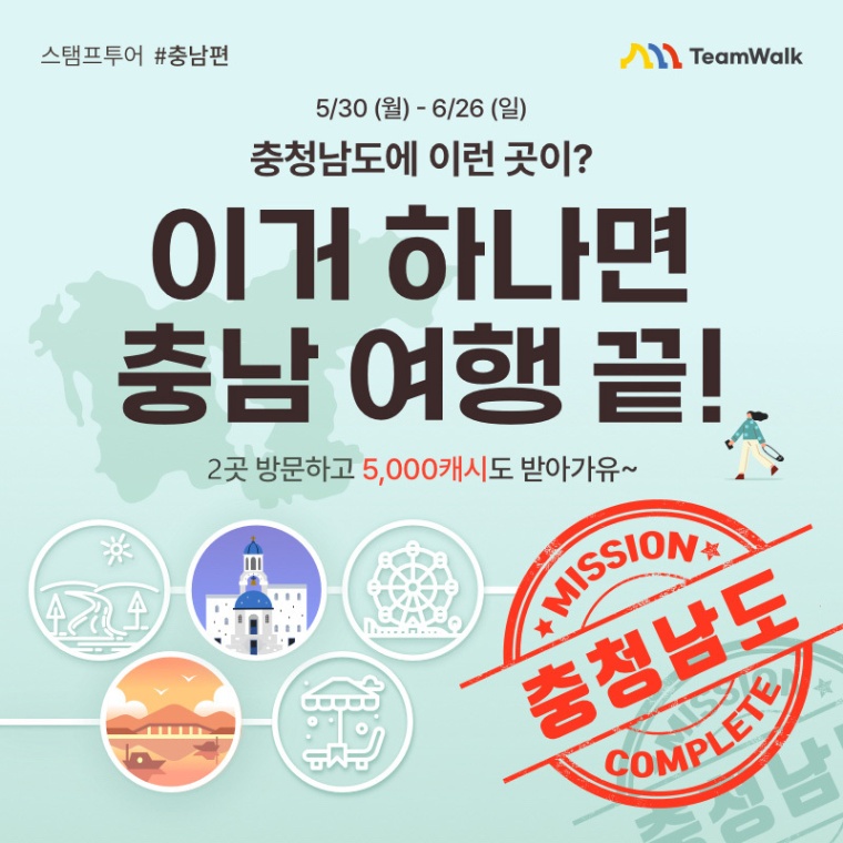 - 코스안내에 보이는 스탬프 지역을 방문해서 스탬프가 활성화될 때마다 스탬프캐시를 받을 수 있어요.