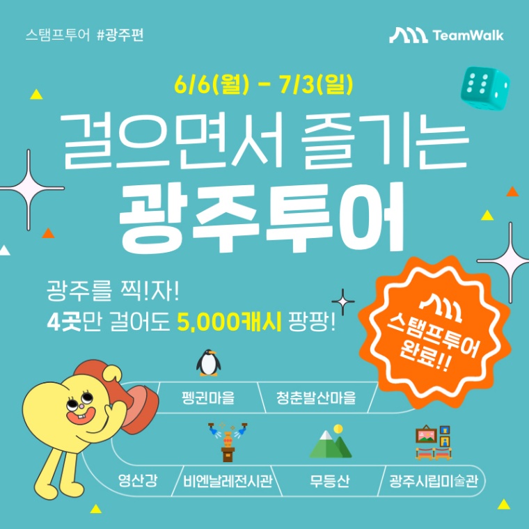- 코스안내에 보이는 스탬프 지역을 방문해서 스탬프가 활성화될 때마다 스탬프캐시를 받을 수 있어요.